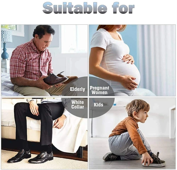 - Perfect angle for sliding feet into shoes. Hook-like handle provides an easy grip plus includes hole for hanging